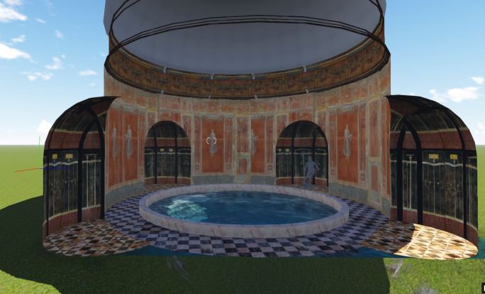 Para la presentación del modelo virtual de la Casa de los mármoles realizamos un recreación del espacio del peristilo con el aspecto que pudo tener en las fases 2 y 3.