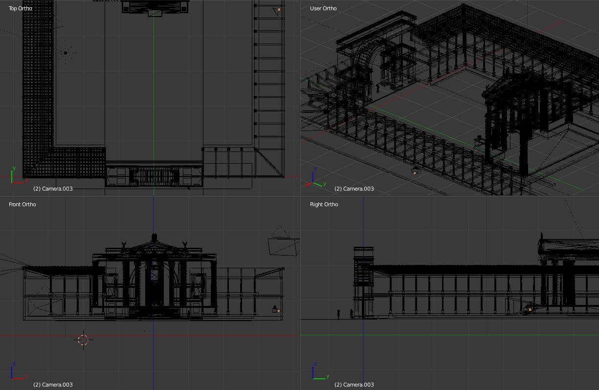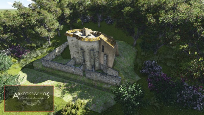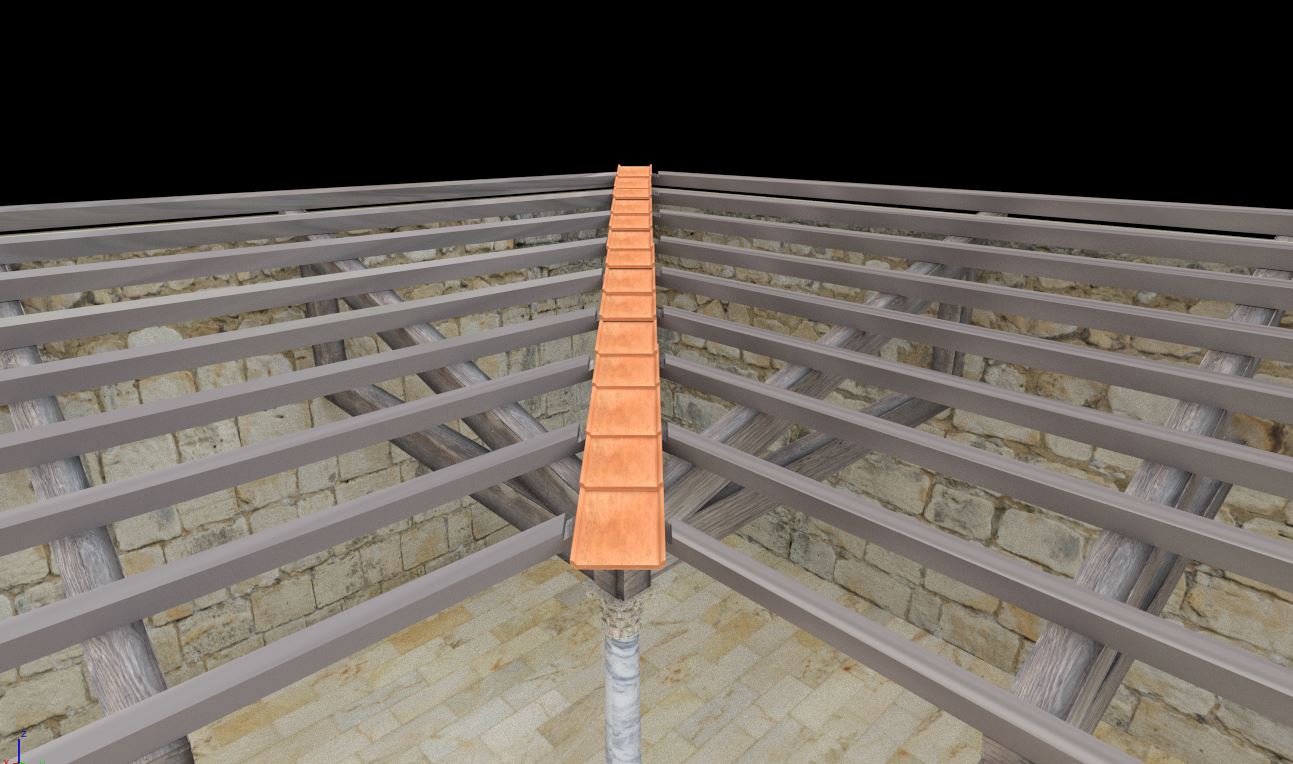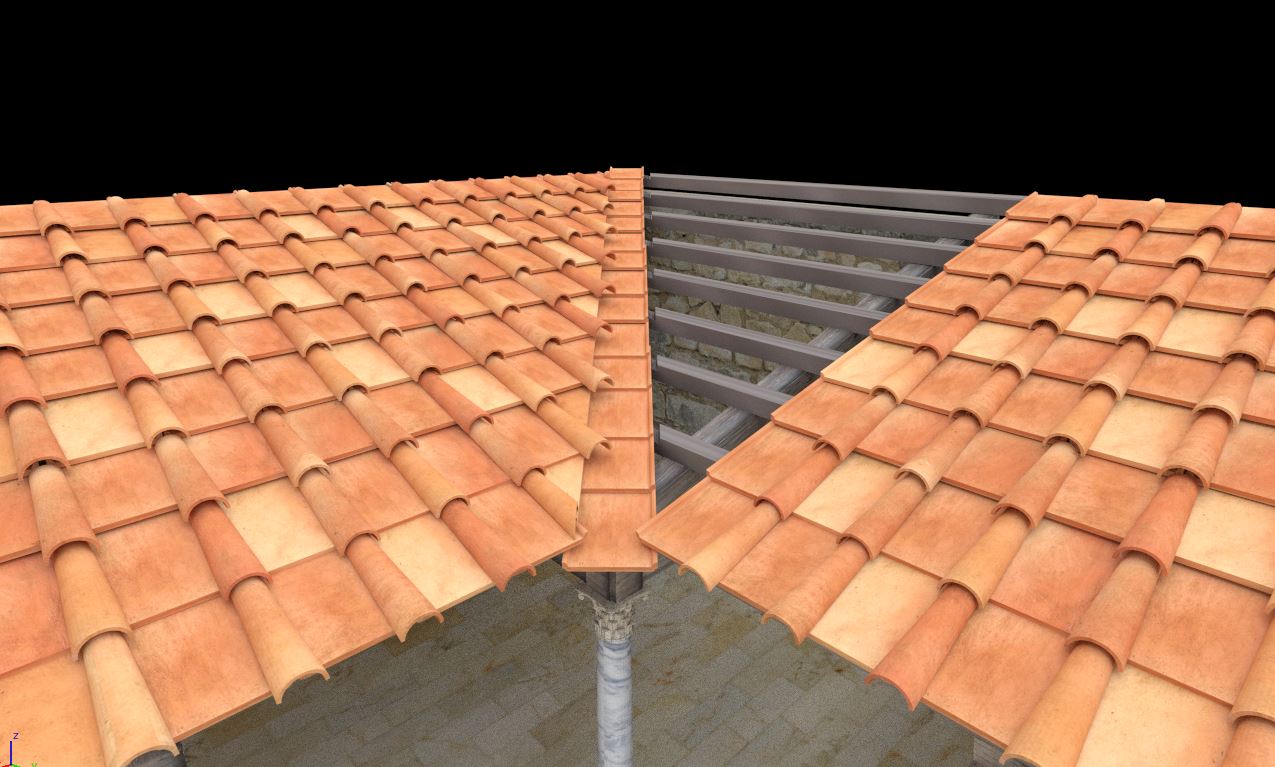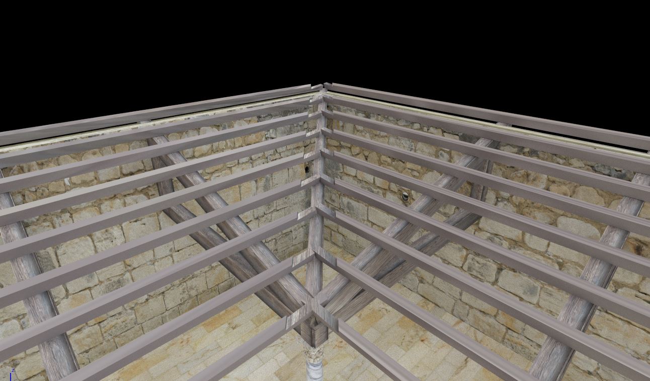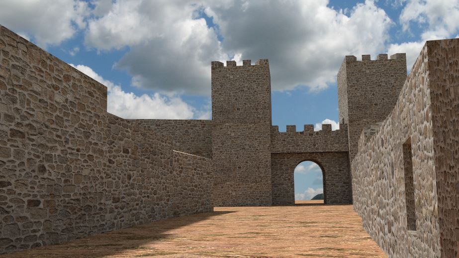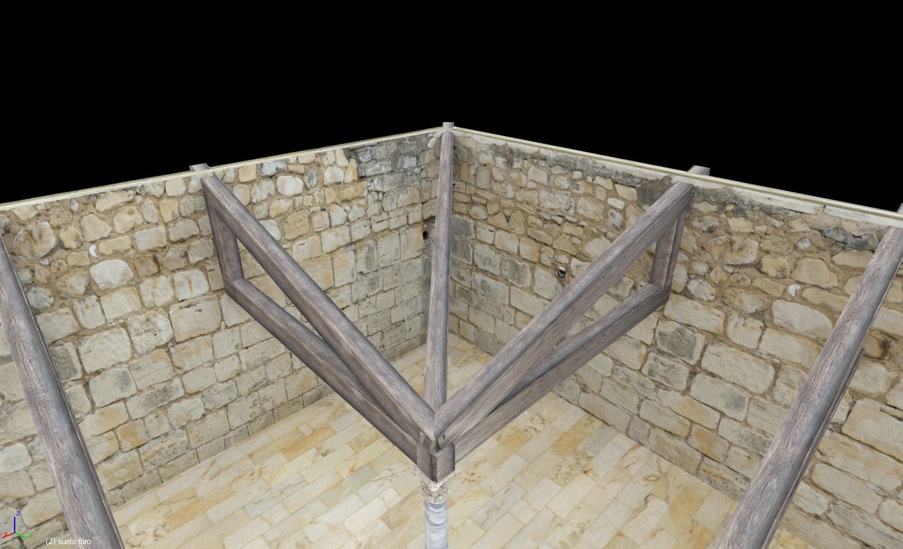 Al igual que ocurre en la restauración real de algunos edificios se ha optado por retranquear ligeramente los paramentos virtuales con respecto a los paramentos del modelo fotogramétrico con el fin de que sea perfectamente visible y diferenciable lo conservado de lo reconstruido.