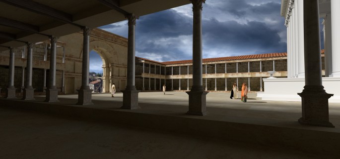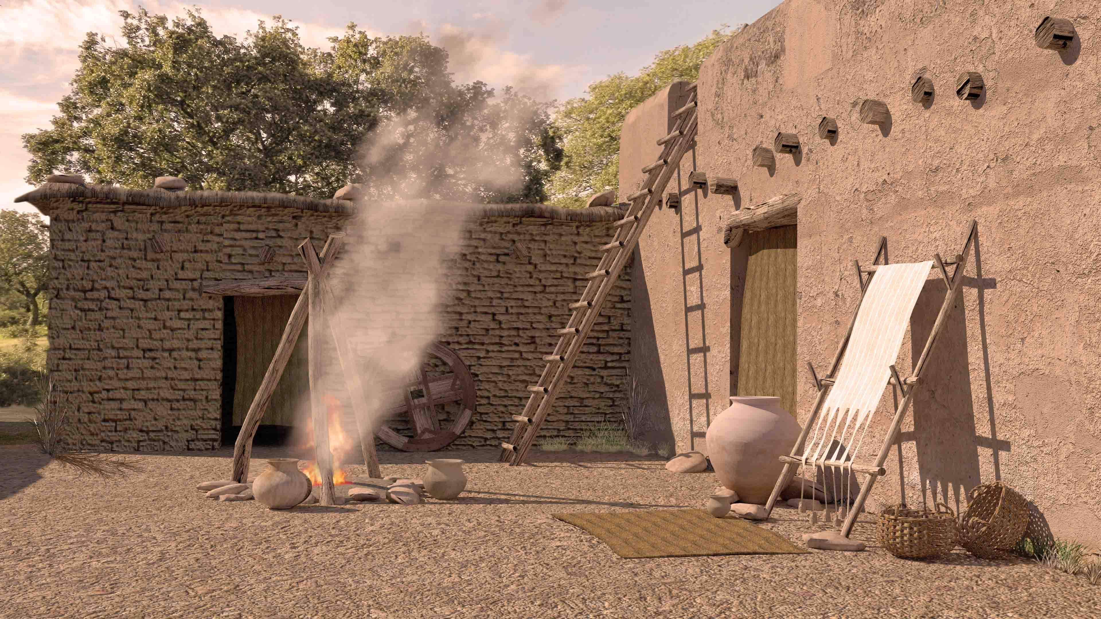 Del análisis detenido de todas estas soluciones y su aplicación al modelo virtual surge el resultado que ofrecemos. El uso de texturas obtenidas en el entorno del yacimiento ayuda enormemente a dar realismo a la reconstrucción y a una perfecta integración cromática del modelo fotogramétrico con los elementos modelados y texturizados de forma independiente.
